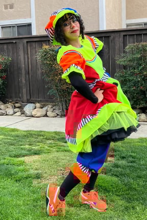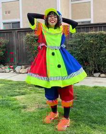 Comet started visiting parties and events in 2015 with the Compassionate Clown Company. They trained her on balloon twisting, what to do at a party, face painting basics, and glitter tattoos. For awhile Comet was in charge of their equipment, and even hiring and training their new clowns! She still works with them whenever possible and recommends them wholeheartedly as a great company to work with.